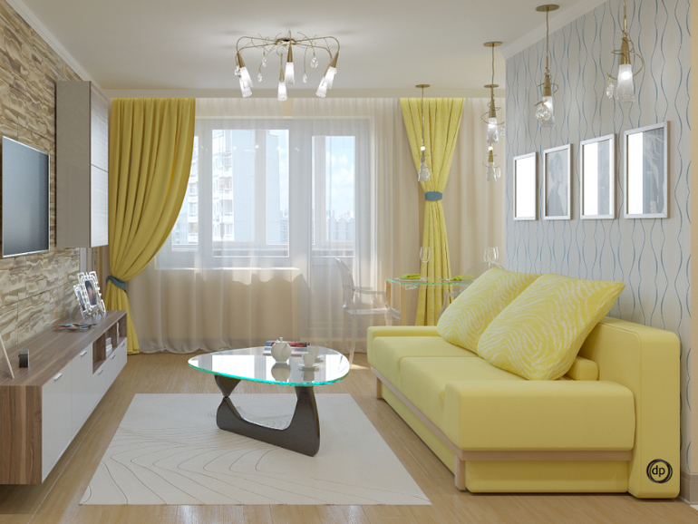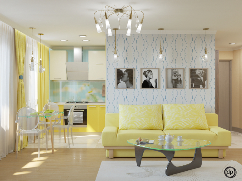 Но выбор пал на желтую. С ней интерьер получился гораздо просторнее.