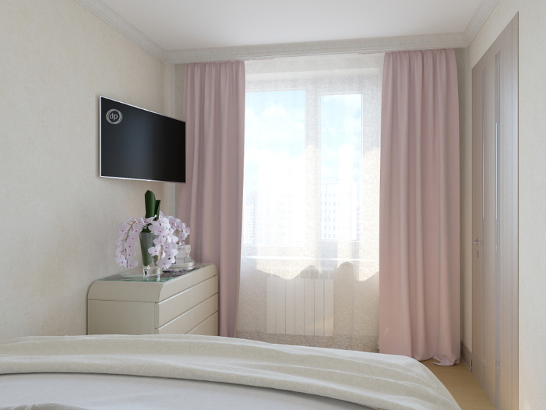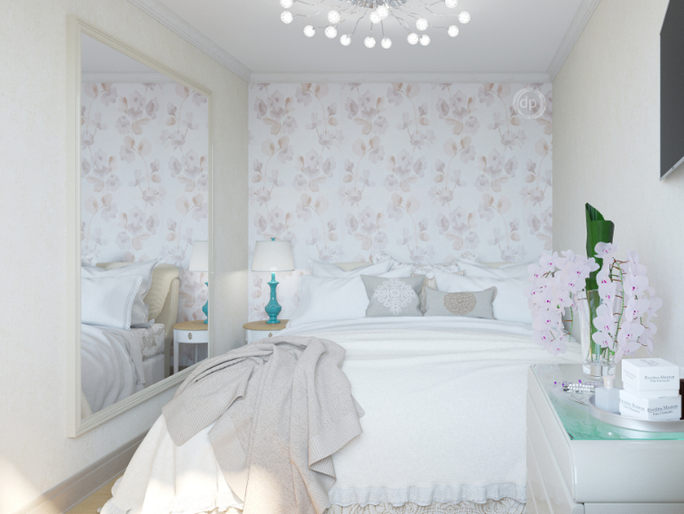 Спальня у нас вышла по проекту небольшая и, Чтобы не перегружать интерьер, спальню было решено использовать нежную и воздушную цветовую гамму! Получилось очень здорово, а в живую смотрится еще лучше!