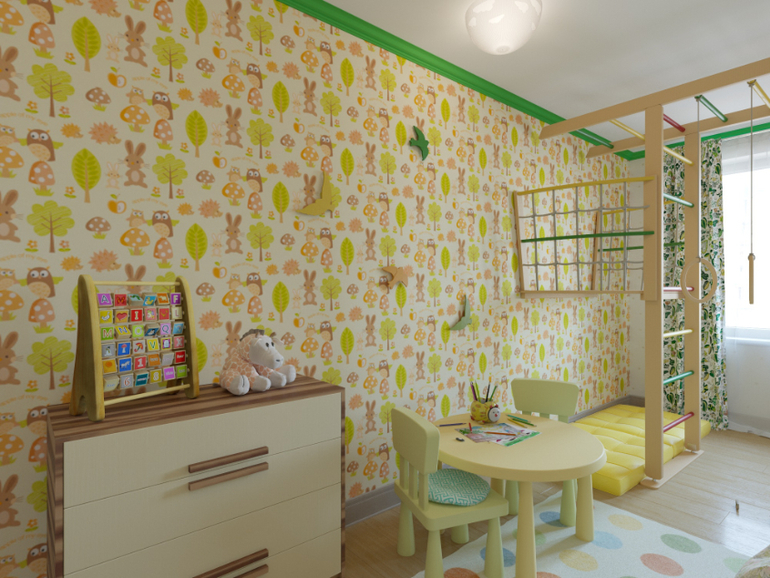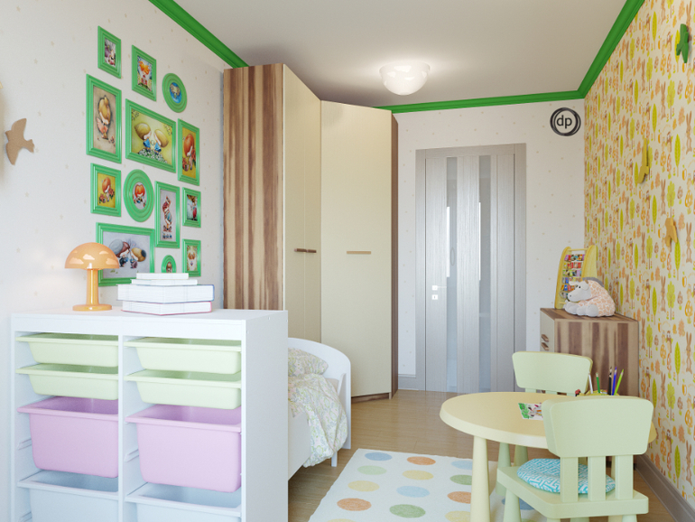 Ну, а вот над детской пришлось потрудиться. И вроде с гаммой все быстро решилось, и с расстановкой не возникло никаких проблем, но, к сожалению, все настенные покрытия, которые мы использовали на эскизах, приходилось ждать от двух до четыре недель!!! Что, естественно, для нас не подходило. Сроки поджимали, строители быстро делали свою работу и мы не стали терять времени, отправились на поиски. Эскизов с выбранным покрытием нет, но я обязательно поделюсь результатами позже.