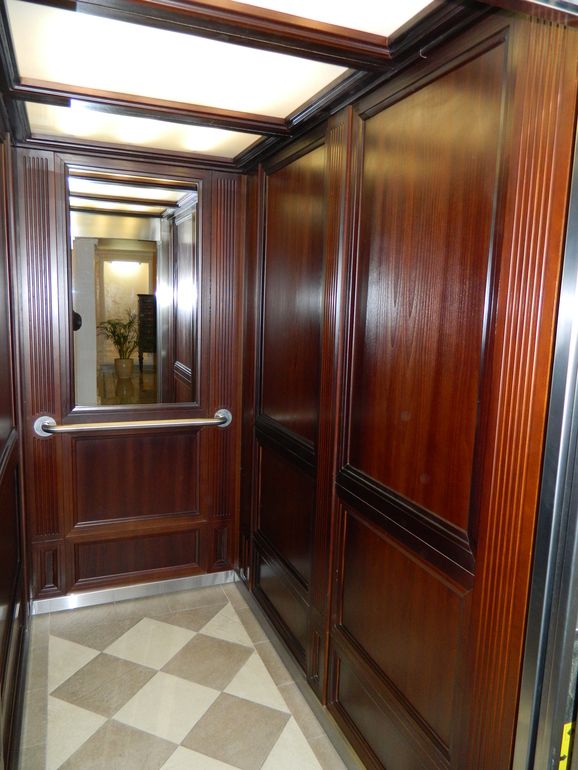 23. Отделка лифта. Шпонированный МДФ, массив Ольха.