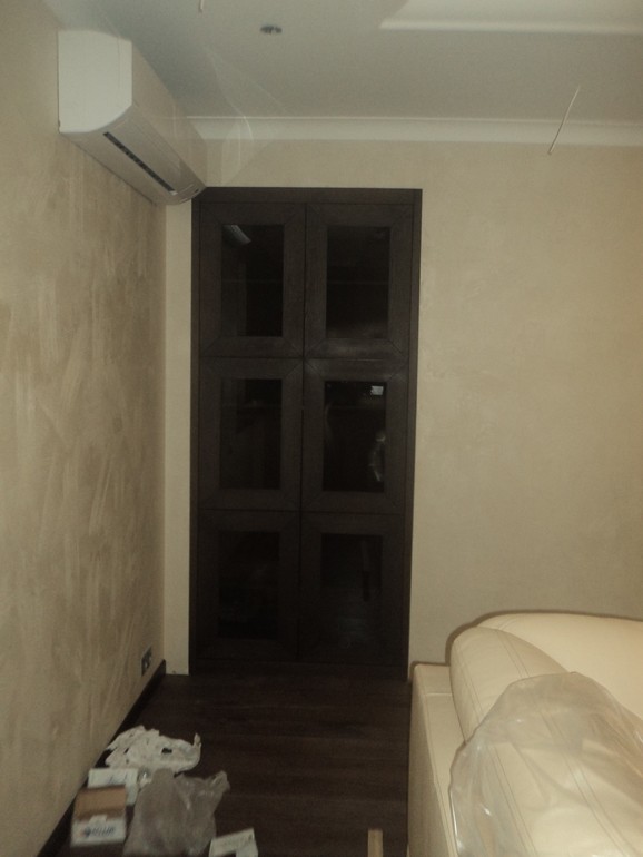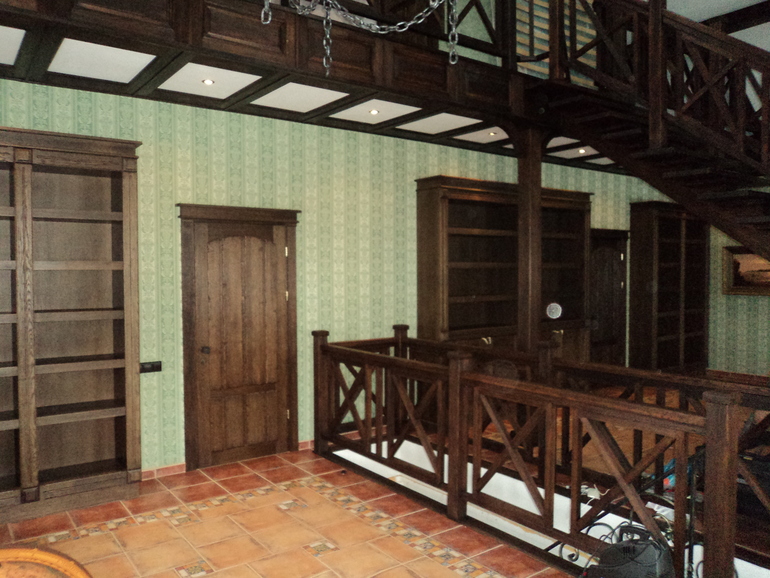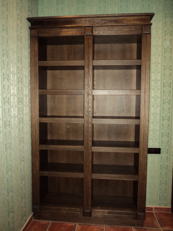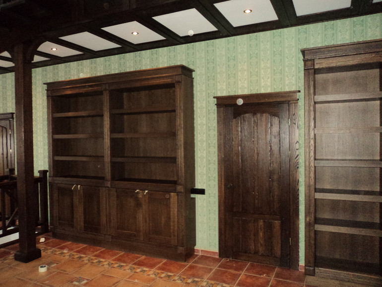 13. Книжные шкафы, двери, отделка потолка. МДФ (шпон дуб, массив дуба, брашировка)