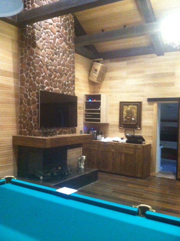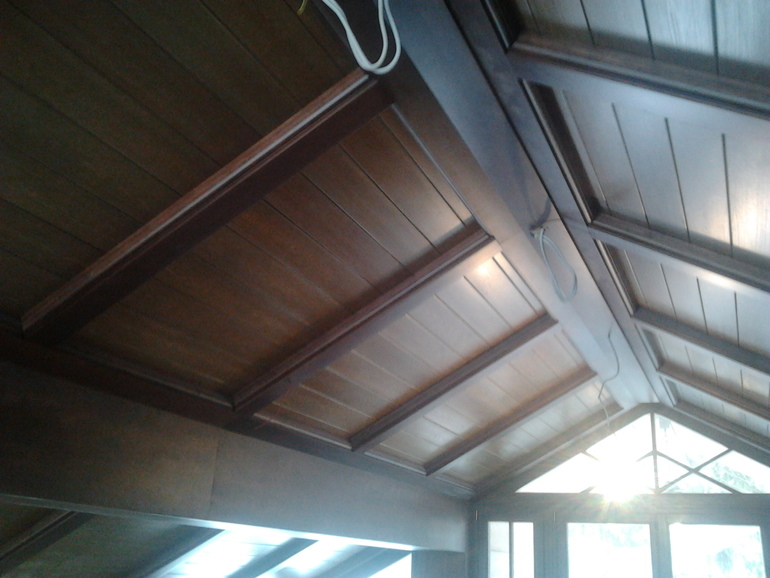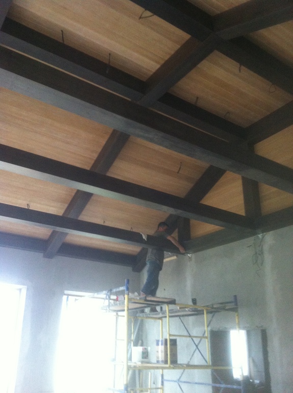 25. Отделка потолка панелями. МДФ (шпон дуб, патина- черная).