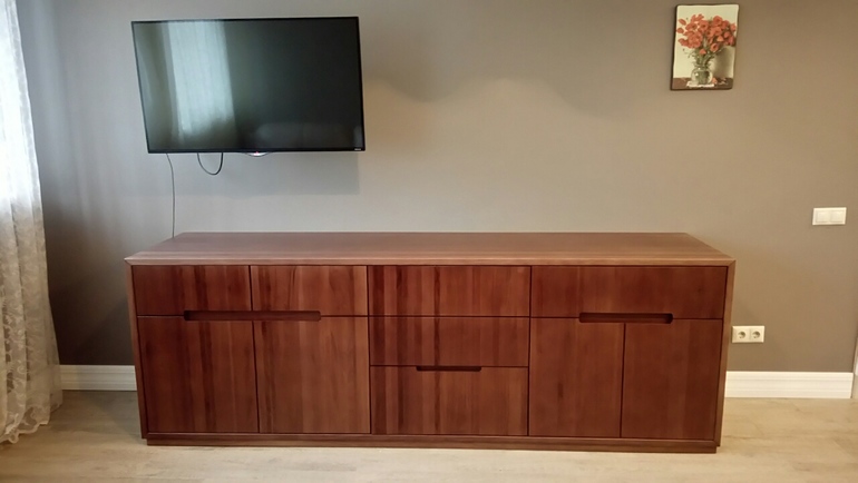Основное наше направление- это мебель из шпонированного МДФ и массива. Мы любим и умеем работать с натуральным деревом, шпоном. У нас работают только профессионалы своего дела. В своей работе мы используем лакокрасочные материалы только премиум класса итальянского производства. Поэтому наша мебель выглядит по-настоящему красиво и дорого. На всю мебель мы даем свою фирменную гарантию и отвечаем за ее качество!