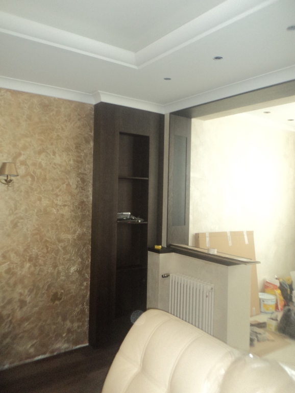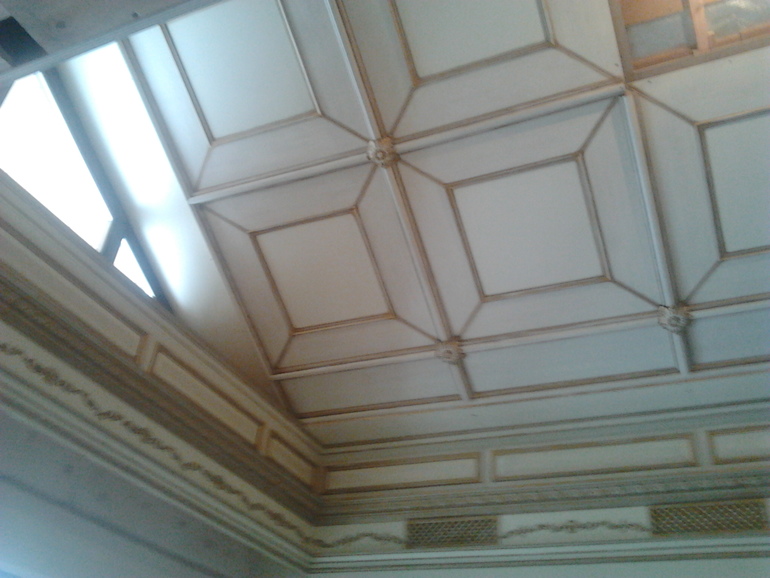 24. Отделка потолка панелями. МДФ (открас эмаль, патина- золото).