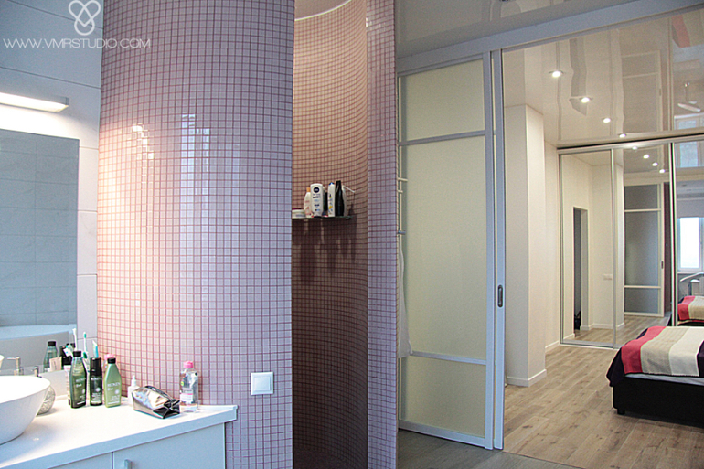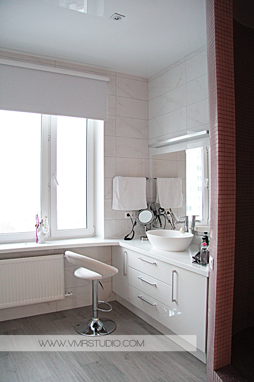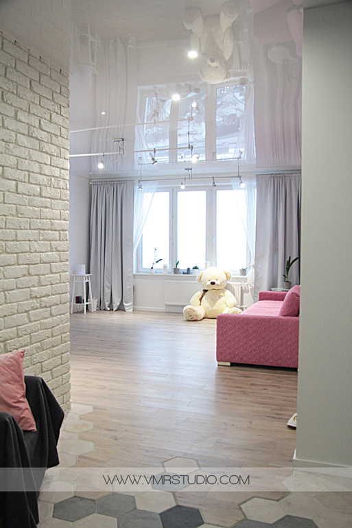 Так как хозяйка квартиры нежная и милая, дизайн должен был соответствовать ей, мы использовали три цвета в интерьере, что бы добиться нужного результата : розовый, белый и серый. Площадь квартиры вместе с длинным балконом (на котором у нас лаундж зона) составляет 120кв.м. Нами было проработано несколько вариантов планировочных решений, но мы остановились на самом легком, воздушном и просторном, при этом очень функциональном.