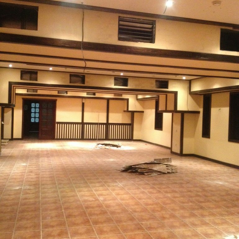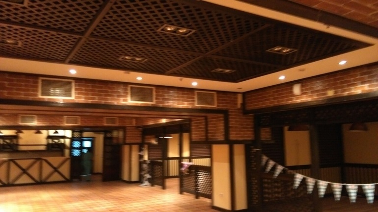 Сейчас темный желтый цвет. Он очень давящий. Уже купили светлые цвета. Молочный и чуть бежеватый. Бежевый для балок, где сейчас кирпичики.
