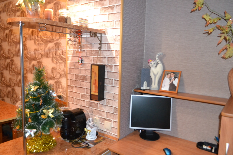 Вот. Вынесли оконный блок и сделали мини-кабинет для меня с одной стороны и вынесли холодильник в другую сторону
