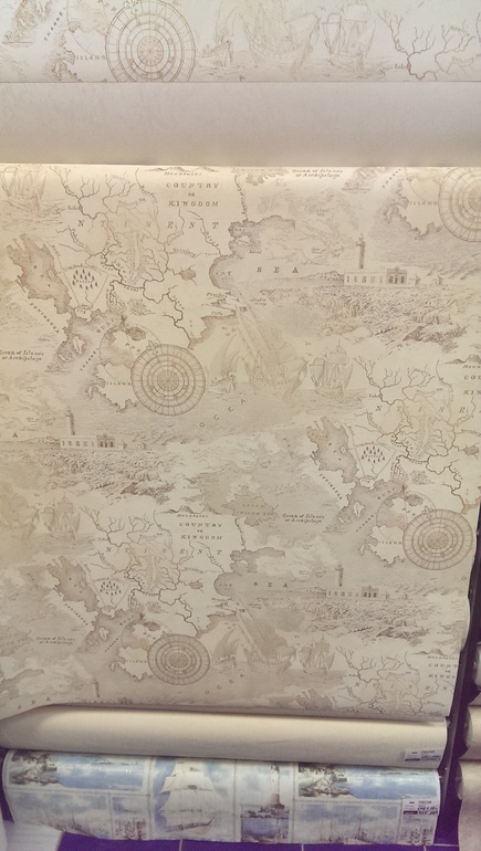 Очень приятные обои. И тематика довольно ненавязчивая. Я бы не стала рассматривать эти обои именно, как морские. Это скорее тема путешествий, открытий. В них присутствует дух странствий, свободы. Обыграть их можно очень по-разному. Вы просто посмотрите на них по-новому. По мне, так вы сделали отличный выбор.