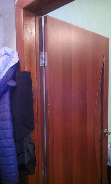 Вот и дверь. Летом ремонт, подыскиваю, просматриваю уже многое сейчас. Как видно на фотке дверь и плинтуса - родные, а вот коробка самодельная, покрашенная лаком.