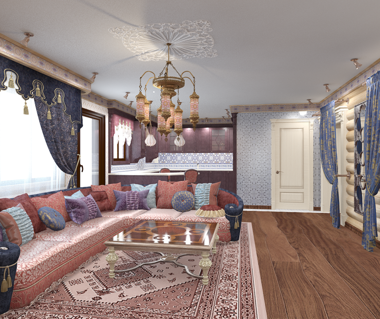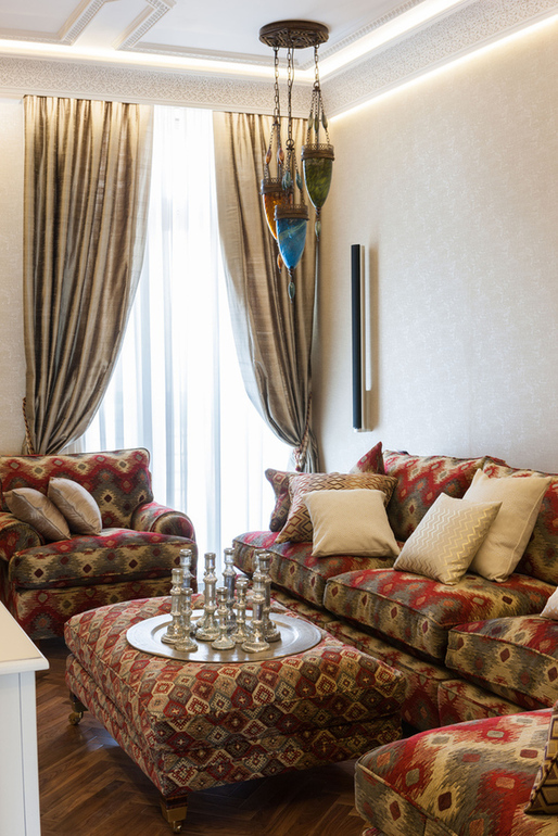 Вся красота восточный интерьеров в мелочах и отделке, а вот текстиль, мне кажется, лучше однотонный