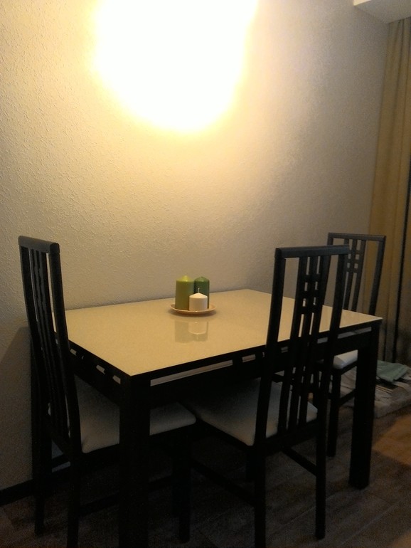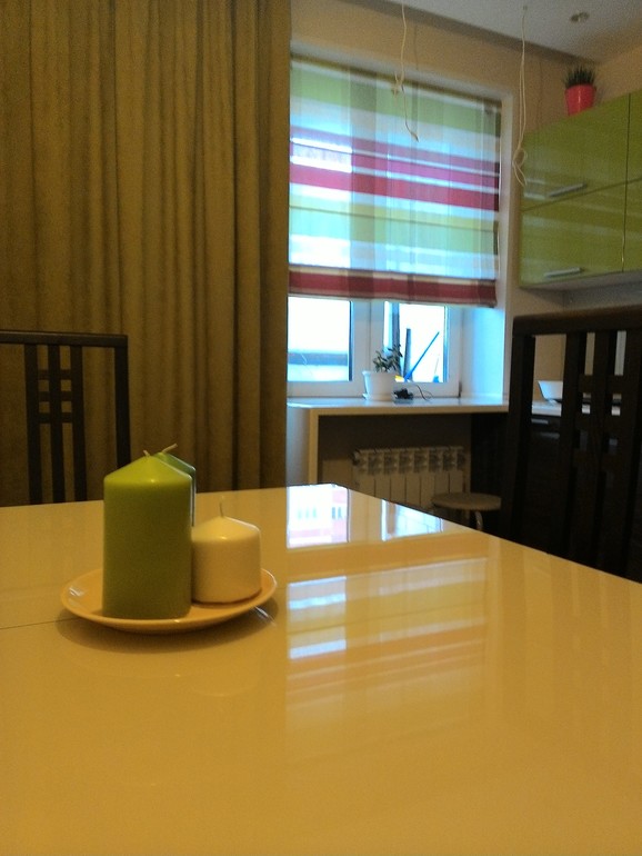 Спасибо:)Ближе к вечеру верх гарнитура похож на цвет зеленого яблока,так что вы правильно подметили - сочная получилась кухня)На фото цвет фасадов почти такой же,что и цвет основания у стола,а в жизни фасады более рельефные и посветлее.Думаю ничего страшного. .?Всегда поражалась,сколько различых вариаций у этого венге)))