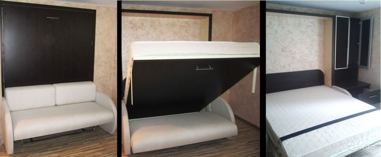 Либо есть варианты с откидной кроватью, которую можно поставить хоть по центру.