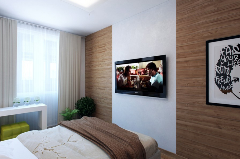 Этого расстояния достаточно:) минимальных проход по эргономическим нормам как раз 70 см. Вешать телевизор стоит относительно центральной оси кровати в 17 градусов от точки зрения