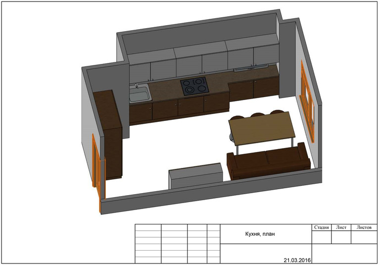 Уже думали так, но тогда сама кухня очень длинная получится, вроде не нужна такая огромная