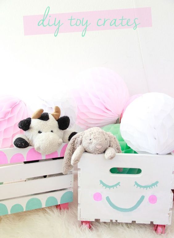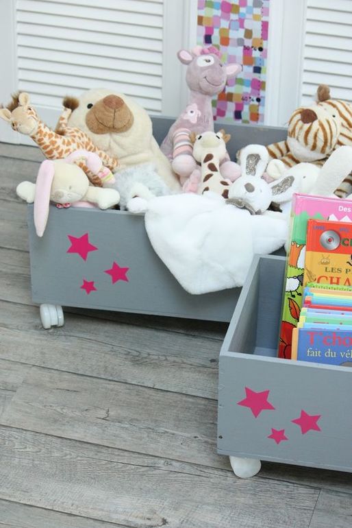 Интерьерное решение детской комнатыКрутая на мой взгляд идея. Ящики из фанеры, можно придумать любой дизайн. Подойдет и к мальчуковой и девчачьей комнате. Если приделать колеса, то передвигать можно безопасно для напольного покрытия. Под катом много фото.