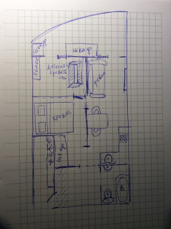 Помогите пожалуйста)) голову сломала) как сделать двухкомнатную студию и ванну с туалетом больше и совместную