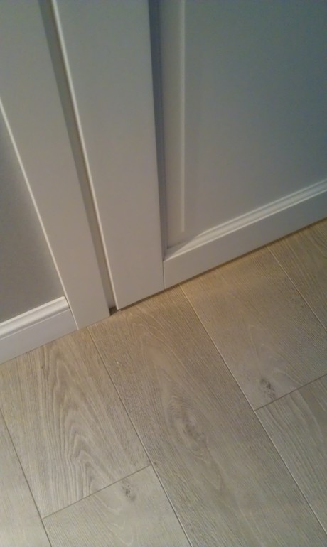 А зачем вам порожек ? Мы об него постоянно вспотыкаемся. Обои там отходят из-за этого и рвутся. Дверь над порожком у нас. Сама дверь, косяк дверной (боковушки по бокам на стене) до пола идут
