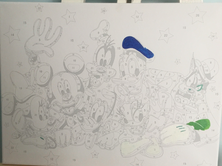 Еще у нас есть мольберт, но пока он стоит за дверью. Арсюшка и лера очень хотят поступить в худ школу, поэтому дожидается своего часа. Пока раскрашиваем по номерам.