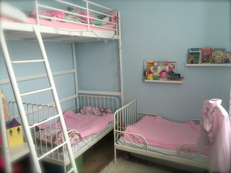Интерьерное решение детской комнатыНу вот и мы готовы показать наше временное жилье, вернее комнату для девочек. Перееехали мы из своего дома в трехэтажный таунхаус, так как строим другой дом. Конечно у кадого через некоторое время будет своя комната, но пока все вместе, немного тесно, но зато какой то другой мир. Все рядом, много детей в поселке, движуха невероятная. Интересно, за год я от этого устану или наоборот захочу остаться здесь жить?!