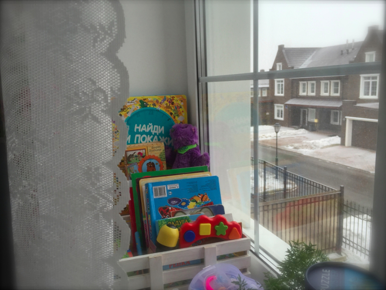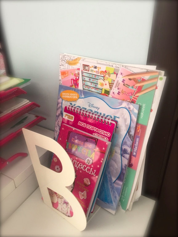 Книги, которые сейчас нужны Лере, храним отдельно. Все остальное у нас в коробках. Это покажу чуть позже