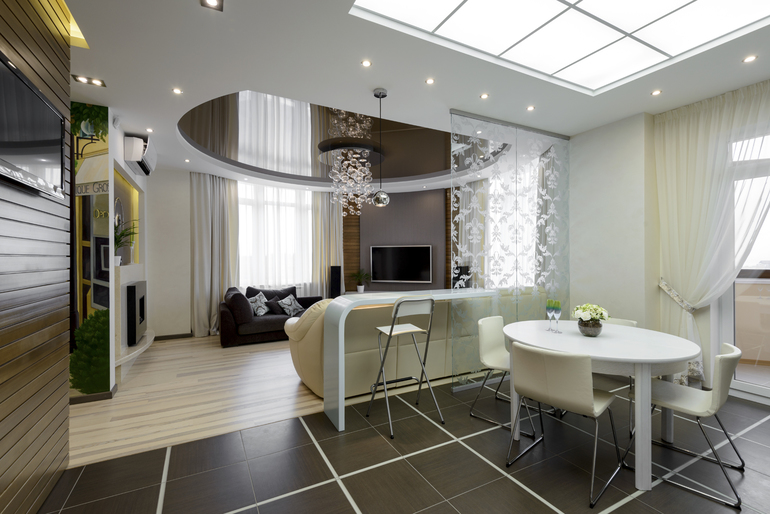 Вопросы и ответыДевочки, вот тут, на фото на заднем плане в зоне кухни что такое на потолке? Я бы подумала, что это матовое стекло, а за ним подсветка.... Но как тогда там менять лампочки? И как его закрепляют там?