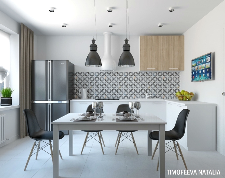 Спасибо! На фартуке плитка vives Amhara multicolor. Стулья Eames стол ИКЕА