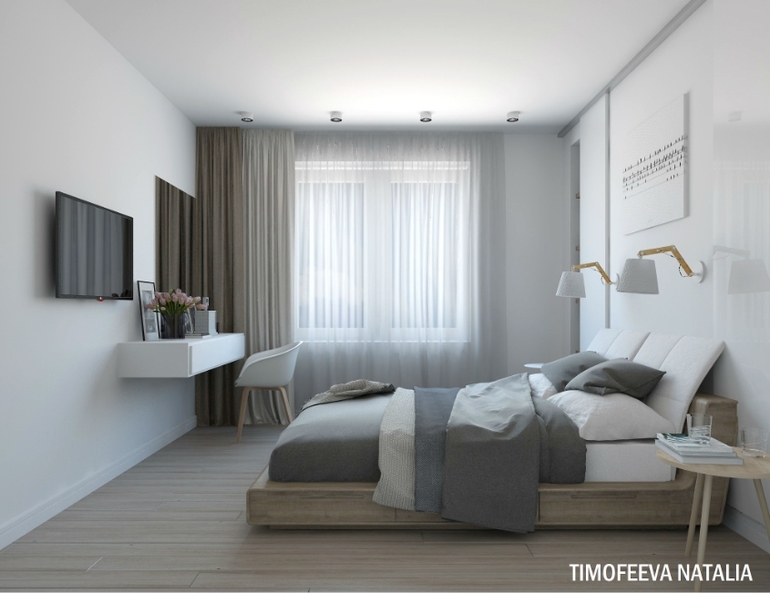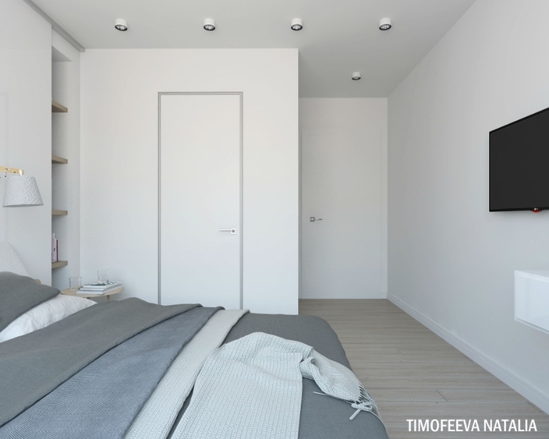 Я бы только в ванной освещение поменяла. 2 спота такого плана оставят потолок неосвещенным, создавая там как бы провал - не очень, на мой взгляд. Плюс зеркало при таком расположении светильников будет плохо освещено, если оно без подсветки. Вообщем, я бы полупрозрачный натяжной потолок с подсветкой сделала. Ну это так, мнение со стороны, а проект мне понравился)