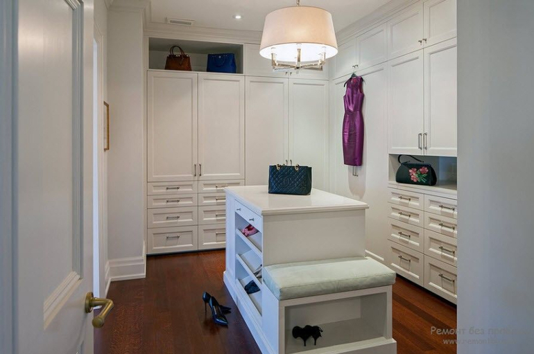 А мне наоборот кажется, что в гардеробной надо максимально открытым все сделать, чтобы видно было. Не ящики, а корзины, открытые вешалки. Там и так много вещей, а если все по ящикам попрятать.