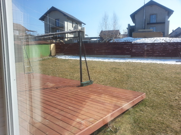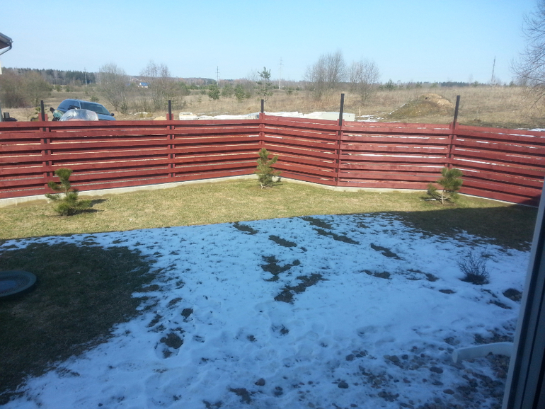 вид с терасы, и теперь вся соль в том , что есть огромное желание отгородится как можно больше от соседский домов, их участки выше и еще дома в два этажа,