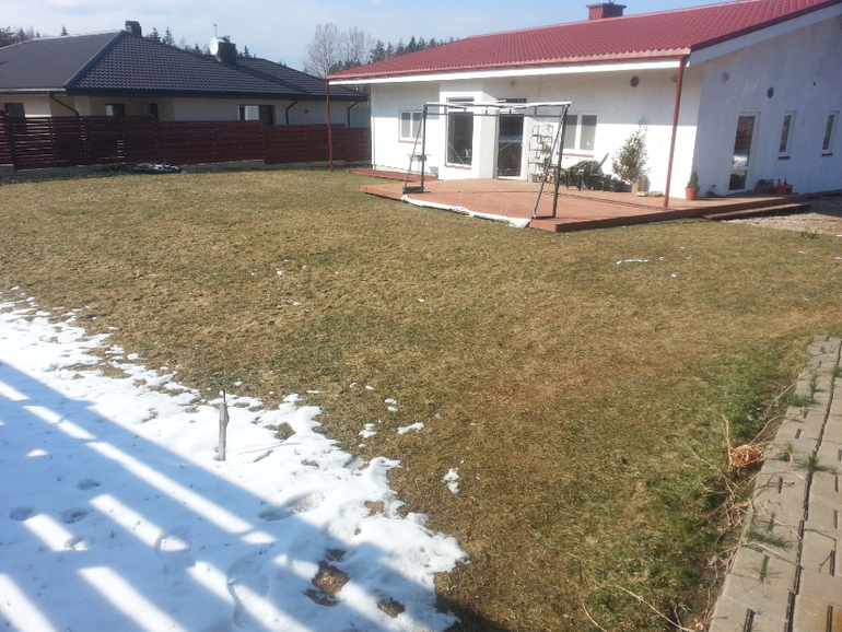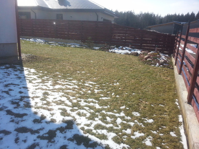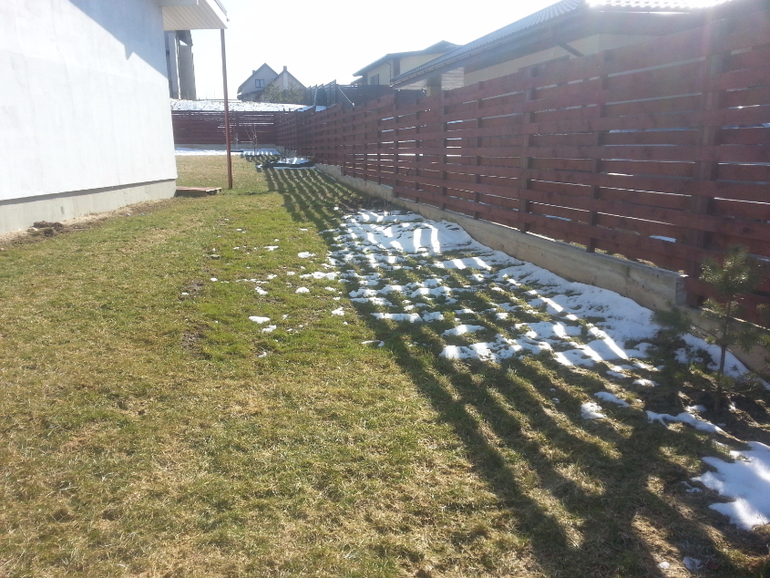 это была зона огорода, но в прошлом году у меня начала цвести редиска, и я поняла что огородник из меня никакой, засадила все травой, сделаю к весне красивый 2 ух метровый загончик, дляя лука и зелени, нам хватит, еще тут уместились кусты смородины вдоль забора, там где слив с крыши посажены пионы, уже проклюнулись красавцы!)
