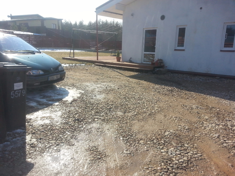 задача оставить площадку для игр, ( гараж этот временный, летом планирую его покрасить как и дом( т.к. пару лет он еще точно с нами пожевет) за этим гаражем и до зеленой машины собачий вольер, вход пока за осб которая у забора)