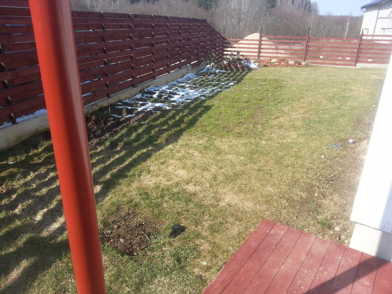 хотелось бы левое дерево посадить справой стороны забора, клумбу с розами передвинуть на пару метров ниже (тем самым закрою соседнюю терассу)))