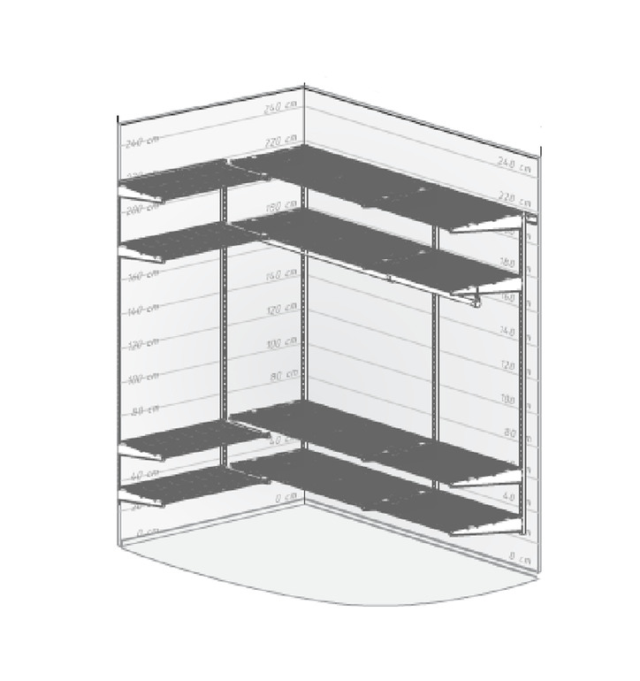Глубина полок и штанг все равно будет стандартные 60 см. Сделайте отдельно специю полок и корзин на 60 см, посмотрите по ширине корзин , они обычно стандартные. Остальное штанга. Тут особо не развернутся в плане какого-то необычного внутреннего наполнения. Сверху полки повыше, для крупногабарита типа чемоданов, внизу место под обувь.