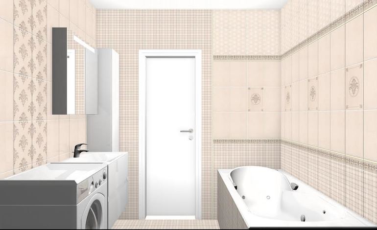 Вроде бы и много всего, но красиво! Можно попробовать оставить клетку на полу и внизу ванны, а остальную клетку заменить на однотон. Над ванной убрать горизонтальный фриз, 5 шт декора, однотон и заменить на плитку которая в самом верху над ванной. Получится зона ванны выделена, остальные стены однотон плюс декор и пол в клеточку, переходящий на бок ванны.