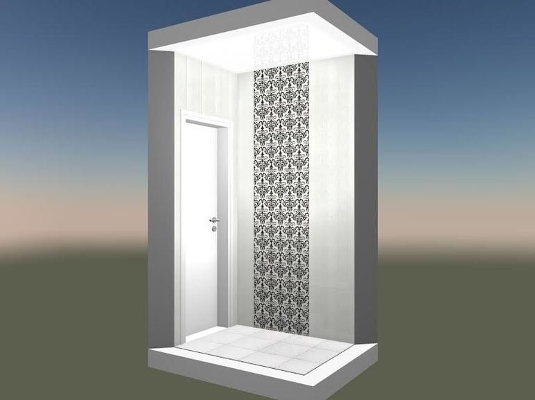 Очень симпатично! Мне почему-то хочется сдвинуть цветные столбы от двери, те чтобы два ряда белых плиток были впереди, а не сзади...не пробовали? И что это на задней стенке? Жалюзийная дверь?