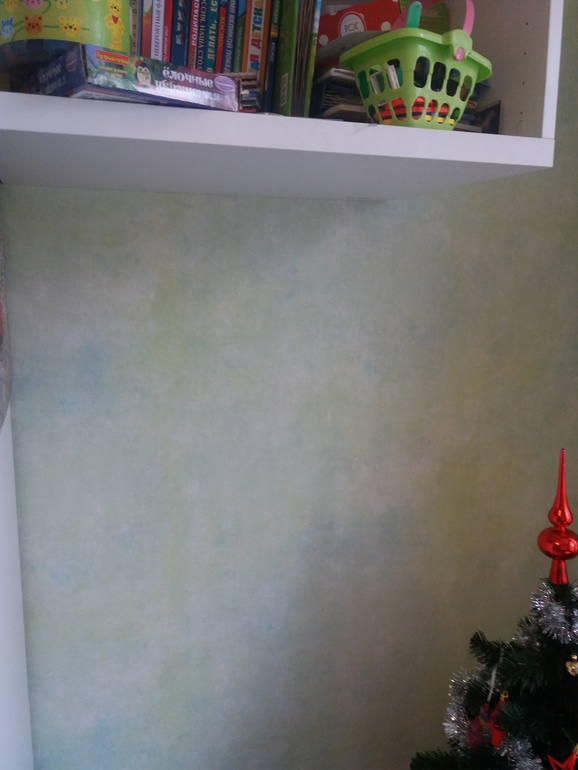 без мебели компаньены смотрелись ужасно, как будто очень старая стена с разными маслянными красками, но сильно затертыми шкуркой. И в жизни общий цвет перекликается с листьями.