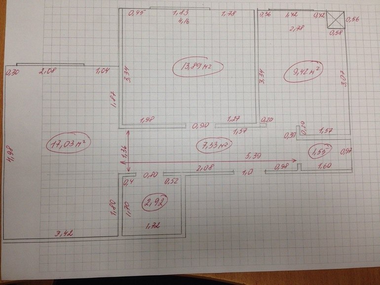 Гостиная с выходом на балкон - 17м2. Спальня(детская) 13м2. Сейчас все вместе спим в 13м2.