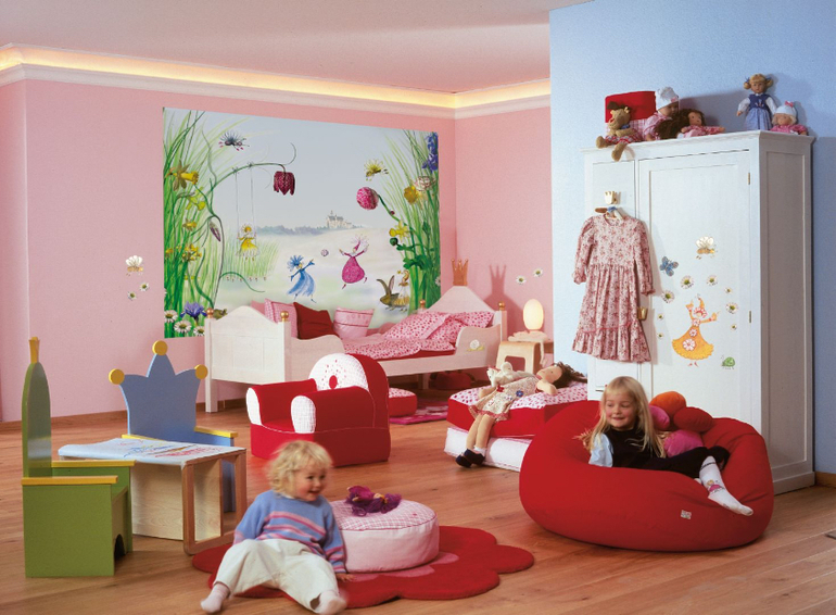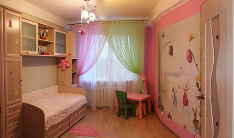Зонирования нет . Дочке 3 года очень просит свою комнату и розовые обои( полюбила она розовый цвет как начала ходить в садик😅 До этого я не покупала ей ничего розового, все пастельных тонов было и вот сейчас ее тянет на все розовое)