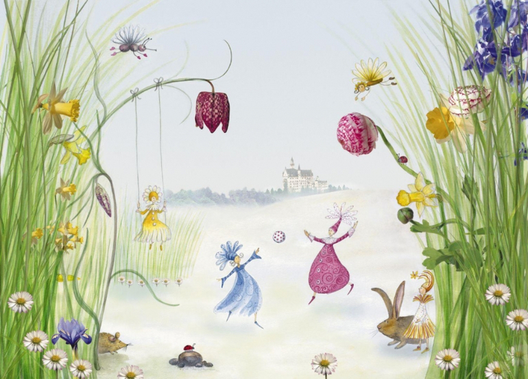 Да можно накопить денег и сделать мини ремонт обновить обои в зале и как положено на чистую стену наклеить эти фотообои. Ну мне просто очень хочется скорее их наклеить😂😂 показать дочкам . Боюсь ремонт не скоро сделаем. А детсво один раз и пролетает быстро. И пока она любит принцесс и картиники хочу чтоб у нее они были. К этой стене поставлю ее столик со стульчиком. Полки книжные. Мне нравится акварельные рисунки. А эти выбранные фотообои напоминают мне иллюстрацию из книжки с детской сказкой.