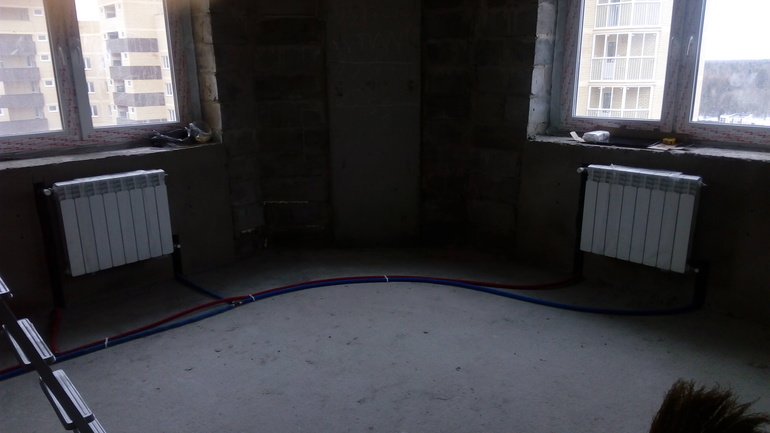 Обязательно сделайте фото разводки труб по полу, с указанием расстояния. Это поможет в дальнейшем избежать повреждений, если будете сверлить что-нибудь в полу ( направляющие для шкафов-купе или ГК перегородки