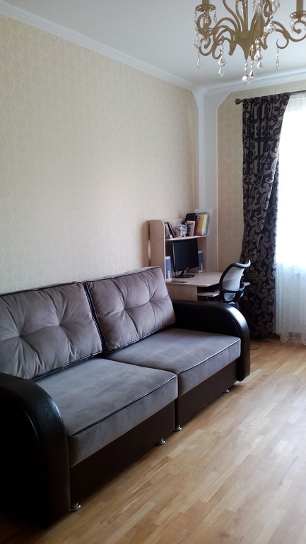 Компьютерный столик и шкаф выполнены из одного материала, диван раскладывается в полноценное место для сна двух человек.
