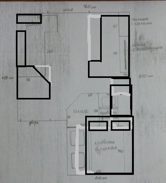а сейчас у вас кровать как стоит? стену бы перенести, которая образует нишу или поменять мебель, а то все как то не очень получается. как вы нарисовали плохо. Ребенок должен быть на свету но не на сквозняке и не у самого окна. Ваша кровать тоже не зажата в углу. Может ребенок будет спать с вами, в нише может быть душно. Кровать ребенка не должна быть рядом с телеком на мой взгляд. И все должно быть удобно, а не протискиваться, и вся мебель функциональной и расстановка оптимальной, простор и свет, это я поняла когда у меня появился ребенок. Вообще у меня однушка с 1 ребенком. Дивану в комнате не место такому большому. У меня комната меньше, в моей никакому не место.