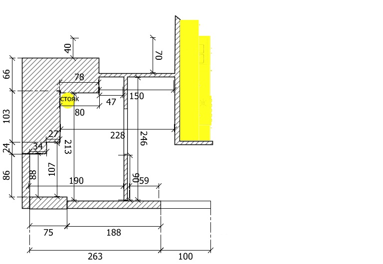 По плану санузел идет совместный, но нам очень принципиально его разделить. Вообще не понимаю как можно жить при совместном санузле. В туалет хочу маленькую раковину. В ванной куча углов от вытяжки. Что с ними делать ума не приложу, как дотянуться до смесителя, Как поставить раковину. Умываемся чуть ли не все вместе, по утрам в ванной ажиотаж. Хотелось бы еще и стиралку сюда же устроить. Вопрос. Как все это уместить и самим уместиться? А еще вопрос, как добраться до счетчиков? Помогите! Я уже всю голову сломала.