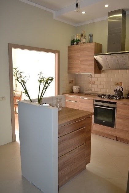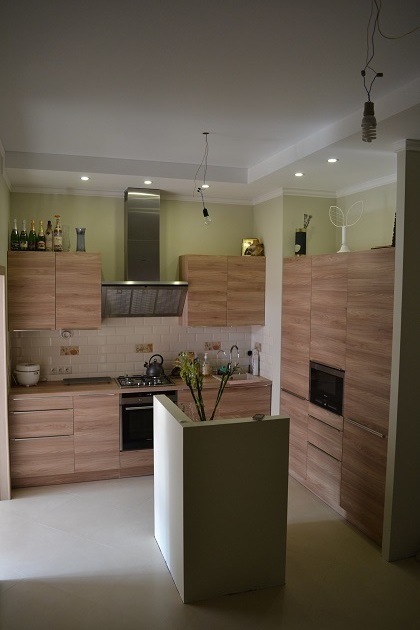 И варочную панель мне кажется лучше ближе к мойке сдвинуть, представьте вынимаете противень из духовки и его удобно поставить тут же рядом.