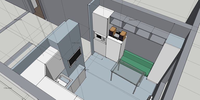 Насчет холодильника пока не думали, но замечание хорошее. Скорее всего к окну. Если что можно холодильники не в плотную придвигать к стене.