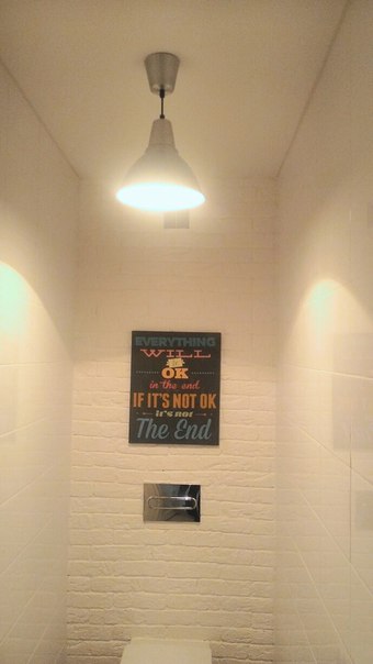 По-моему, именно такая картина с такой мыслью в туалете - просто офигенски))) Я бы оставила. Потому как серьезная картина в туалете - что-то не то.