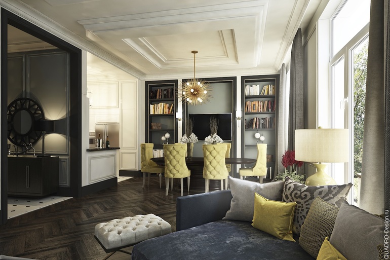 Что то светлое, немного арт-деко , но + современные элементы (больше пространства . Меньше вещей, цвета олива, серый, беж, белый. )