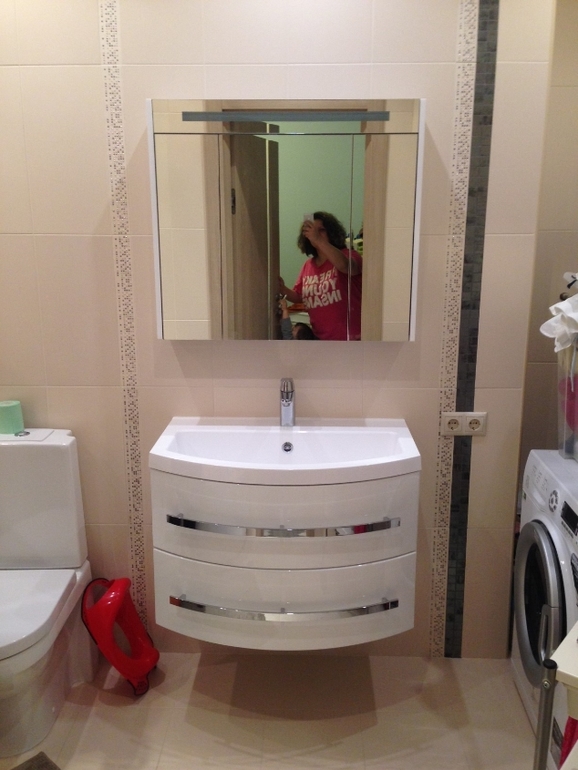 В эти выходные наконец повесили зеркало и шкаф с раковиной. Мебель для ванной астраформ и ванная тоже. Это вообще балдеж! Большая, удобная.