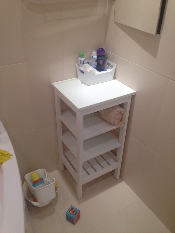 Класс! Вот что удобно в ванной, кран с краю, попу легко мыть ребёнку, а то у нас в углу, и я Даше в раковине мою, так как в ванну ногами она боится вставать, на руке как маленькую держу) А вообще круто, этажерка супер вообще, люблю такие!