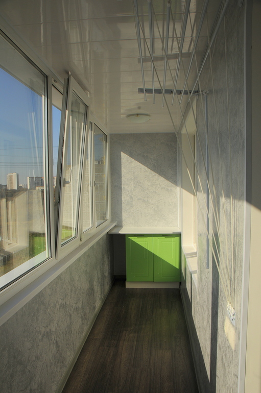Ну и наконец лоджия. Это королева всей квартиры несомненно. Так как идет на всю длину кухни и комнаты и широченная, как аэродром. С нее вид на Сходненскую пойму. Утеплили, поставили пластиковые окна. Отделка жаропрочным ПВХ, так как летом сильно нагревается все.